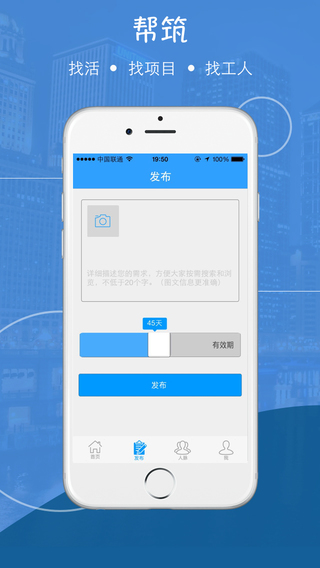 帮筑app是一款为建筑工人与建筑商大家的建筑行业信息平台,将建筑行业的资源进行整合,您可以在这里手机到各类建材信息,是您找寻人脉,挖掘商机的最好帮手。