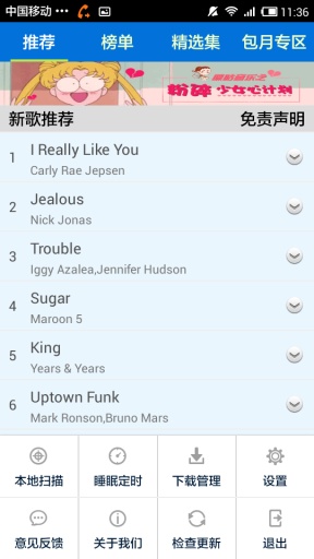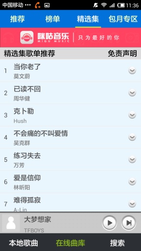 精选时下最流行的歌曲,强大的搜索功能