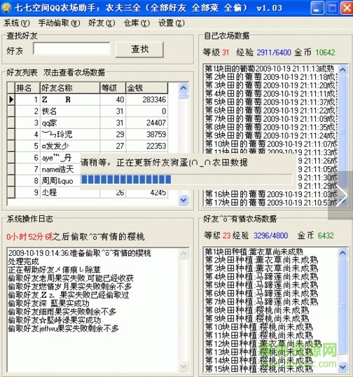 3 如果你是第一次运行,农夫三全会自动更新你qq空间和qq校友的所有好友以及这些好友的作物信息。注意:农夫三全全面支持qq校友农场和qq空间农场。