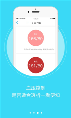 是否适合透析一看便知对于透析患者而言,透析前的血压决定了其是否适合透析,患者可每日早、晚记录血压,根据每日记录血压,显示血压评价,并可以看到历史血压记录,方便用户长期控制记录血压,进行血压管理