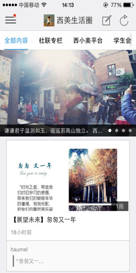 西安美术学院APP是一款提供校园资讯、校友社交等服务的移动客户端。提供校园百科,课表查询、招生查询等功能。学生用户可以使用这款软件查看校园通知,分享校园新鲜事!
