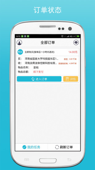 快快配送是基于移动互联网技术和众包模式深度结合的线上咨询服务平台;经平台审核认证通过的自由配送员,可以自由的通过移动设备接受用户在平台上发布的配送需求;可以自主根据用户发布的需求轻松完成订单并赚取相应配送费。