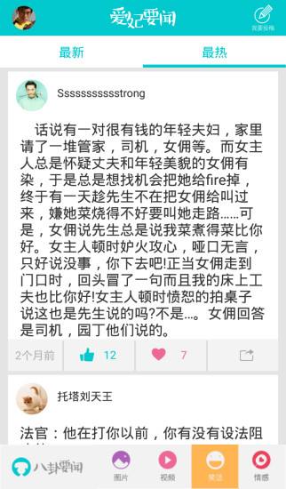 爱妃要闻app是一款专注于娱乐八卦新闻的手机软件。通过这款软件,您可以实时掌握到第一手娱乐八卦资料,让你跟你的闺蜜或者基友聊天的时候猛料不断,除此之外,软件中还有许多爆笑的图片和搞笑视频提供,以让观众在看完八卦之后的无聊时光中更加快乐。是一款娱乐迷,八卦迷们不可错过的手机app。