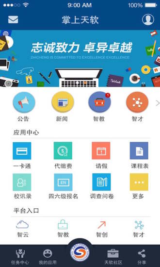 掌上天软是为大学生推出的一款集社交及办公于一体的App。
