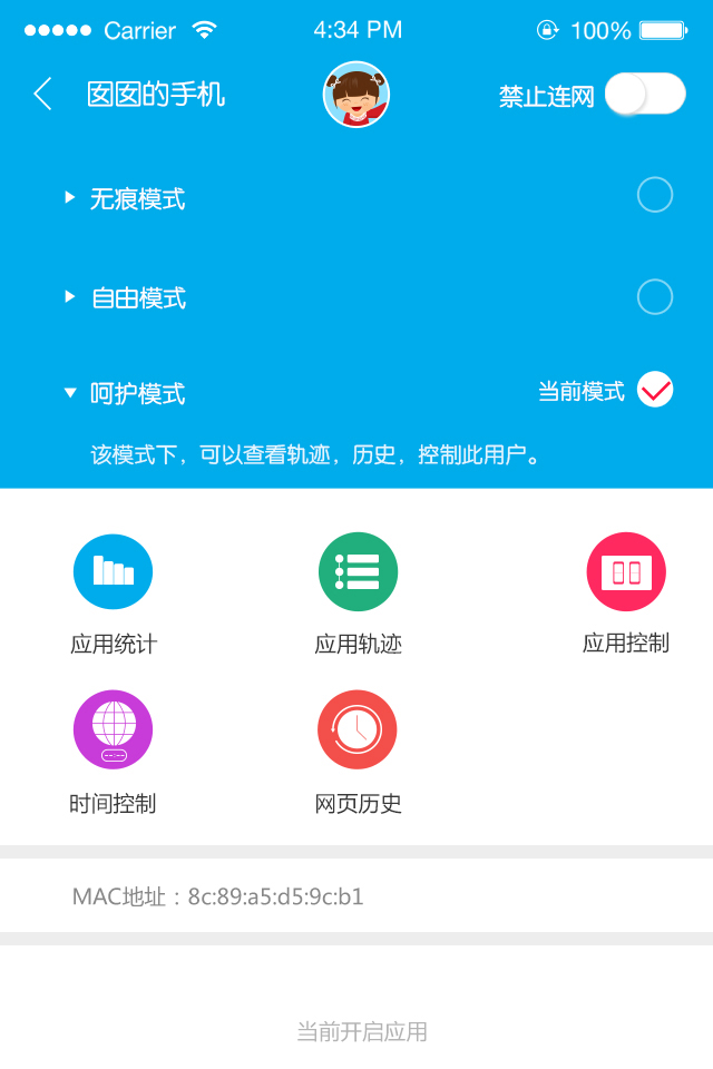 支持终端多种模式设置:呵护模式、自由模式和无痕模式