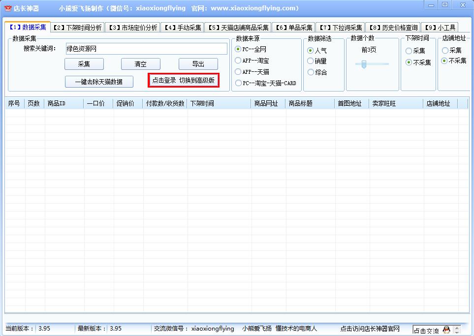 店长神器是一款专门为淘宝店主打造的一款非常好用的店铺管理神器,能够进行数据的采集,进行下架和市场定位分析,在线查询历史价格,单品采集等各种功能,功能非常丰富的一款网点管理软件,欢迎需要的朋友来绿色资源网下载体验!
