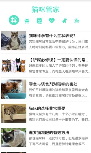 猫咪管家能够全面介绍宠物猫知识的APP,为养猫人士提供猫咪喂养、猫咪护理、猫咪健康、猫咪训练和猫咪美容等养猫知识