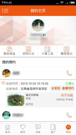4.获得精准购房客户信息,并可在线交流及预约;使用移动设备即可随时随地预约看房,可与为屋购房客户端同步查看客户想要了解的楼盘、户型;客户交易动态随时掌握;提高卖房效率;