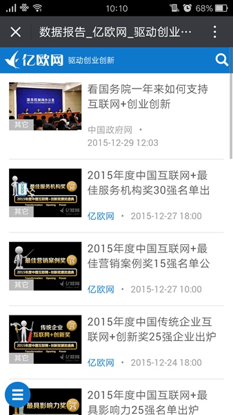 2.有别于大而全的科技媒体,亿欧网坚持深耕互联网+领域,以“移动视角、实体重心、国际视野”为特色。