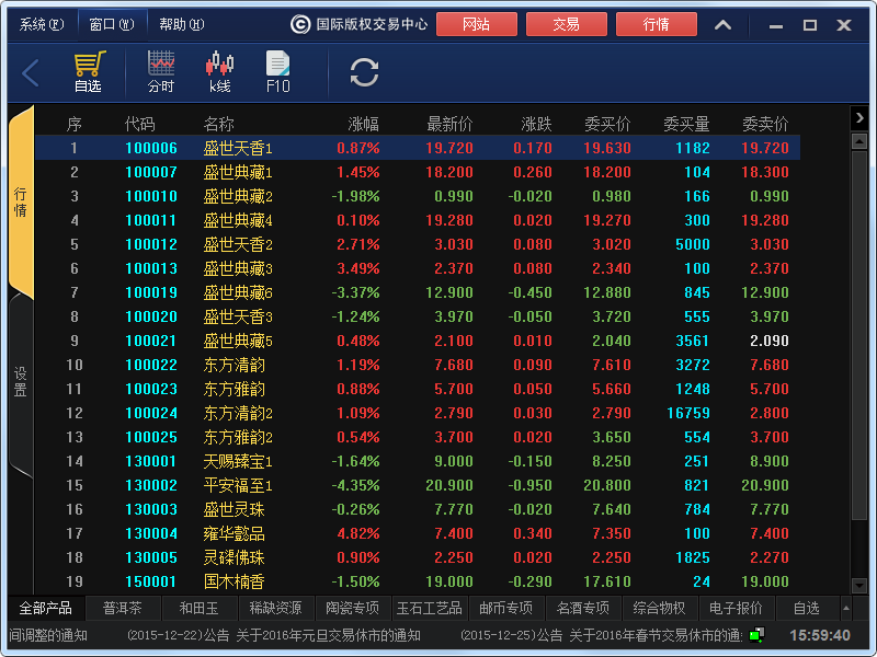 国际版权交易中心客户端是北京东方雍和国际版权交易中心推出的电脑端交易软件,也是国版老酒交易平台客户端,该客户端提供了行情交易、独立交易等功能,分时自选了解市场动态,图文更详细,需要的自行下载吧