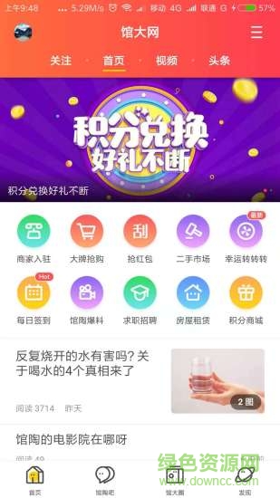 馆大网安卓手机版是一款非常好用的馆陶便民生活服务app,可以查看当地最新的新闻资讯,可以在二手市场进行交易,还可以用积分兑换好礼,欢迎感兴趣的朋友到绿色资源网下载体验!