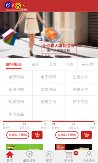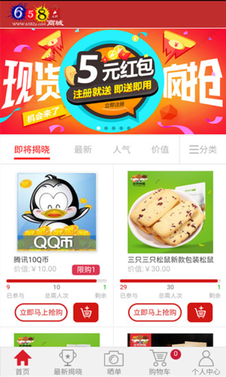 658云购app是一款一元夺宝手机应用,将商品按等价进行划分,运气好1元就可以购买到心仪商品,当然一个商品也可以多次购买,提高中奖几率,如果快点来下载体验吧