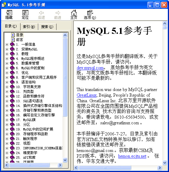 mysql 5.1参考手册是MySQL参考手册的翻译版本,关于MySQL参考手册,请访问:dev.mysql.com。 原始参考手册为英文版,与英文版参考手册相比,本翻译版可能不是最新的。