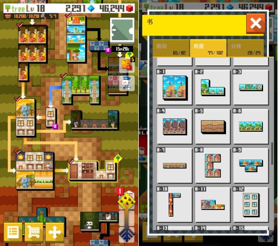 游戏的玩法其实非常简单,玩家收集树果获得像素,然后根据根状图的指示建立相应的动物房间,完成指示后,做好的房间会产生花瓣滋润像素树,像素树便会开花结果生成新的树果,核心玩法大概就是这样简单的套路,非常简单,而且引导教程做的非常完美,包教包会,上手难度基本为0”