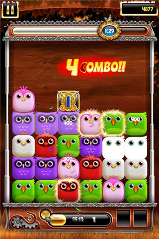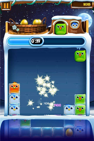 可任意移动没有被其他方块堵住的小鸟方块,,聚集三只相同小鸟就可爆破小鸟方块,如果聚集四只以上就可形成超能"power bird"如果能聚集更多的话,产生更大的爆炸,甚至是吞噬一切的黑洞。