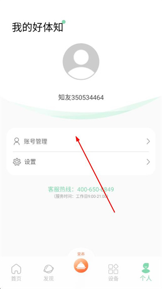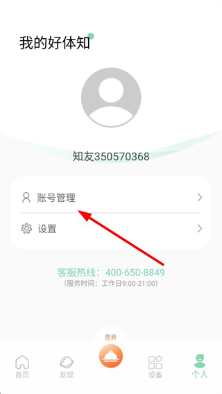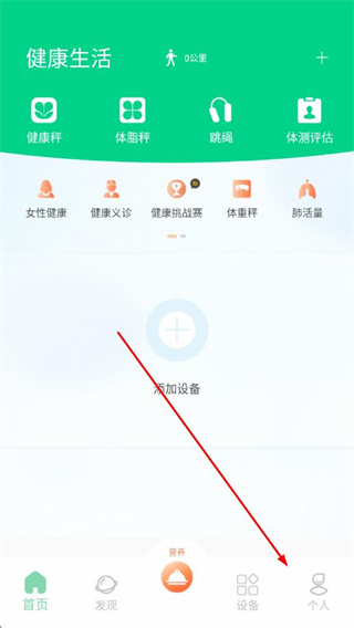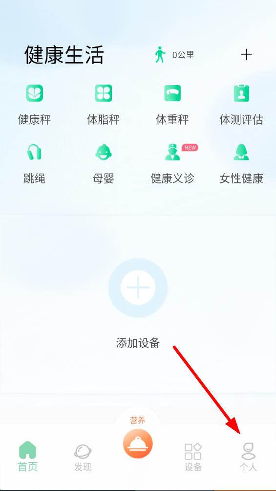 1、打开好体知体脂秤APP,点击底部个人选项,进入个人页面。