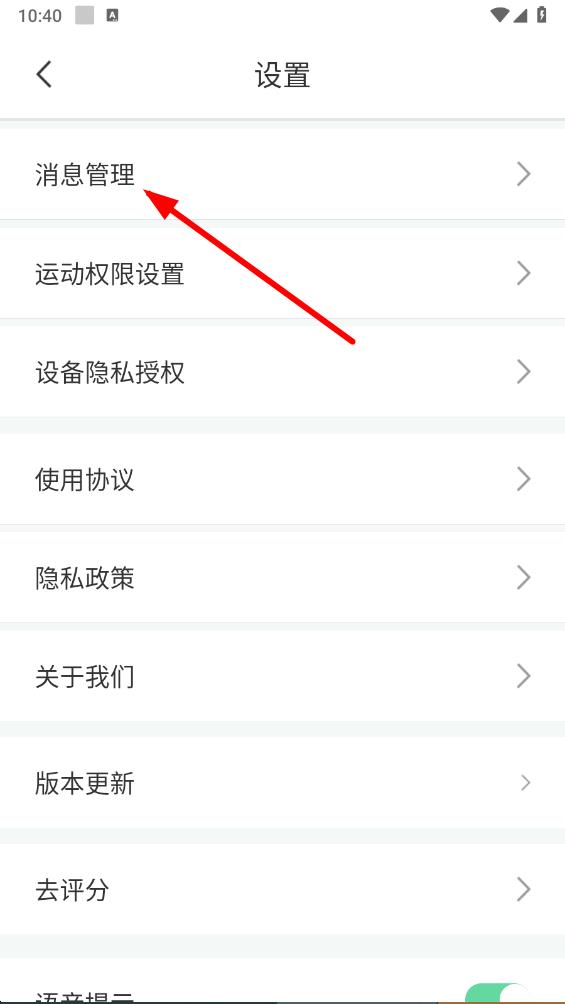 3、在设置页面里,点击消息管理选项,进入消息通知相关设置界面。
