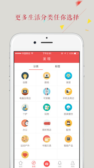 1.你感兴趣的都在这儿:数码,家居,电脑,可穿戴,手机及周边,个护,玩物,厨具餐饮,办公,视听周边,书籍文具,智能产品,健康… 你感兴趣的事物,都在这儿。