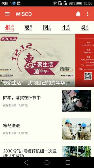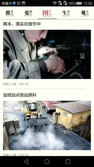 武钢新闻APP是武钢通信公司为武钢工人报社打造的移动新闻阅读产品,包含了推荐、要闻、图片、视频、生活、版面、报料、观点8大板块,涵盖了新闻,资讯,周边的信息,以文字、图片、视频等方式呈现给用户.