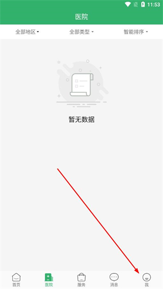 1、打开广东云医院APP,点击底部导航栏中的我。