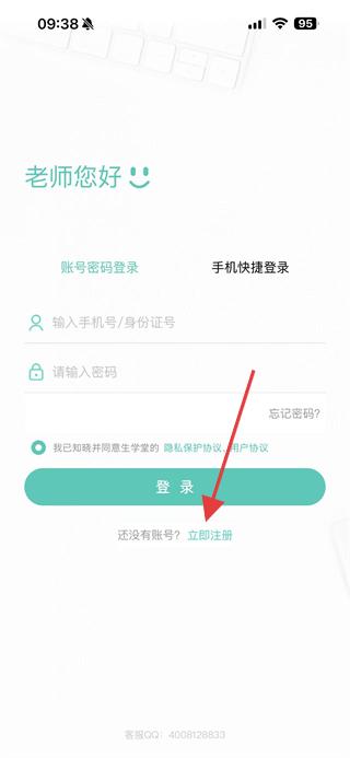 1、打开生学堂APP,在登录页面点击立即注册选项。
