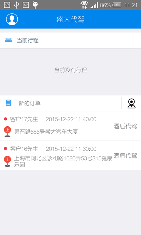软件为配合盛大代驾app使用,主要方便司机朋友能更有效的接单使用。根据司机师傅的服务能力,分为商务代驾,酒后代驾和机场接。