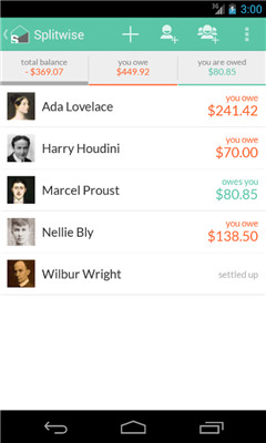 splitwise app是一生活中用处非常大的手机软件。这款软件的主要作用是当用户想要进行aa制的时候,这款软件能让钱的分布变得非常的公平,合理化的aa制,还能对参与和不参与的人进行区分,如果这次活动当中,有人没带钱,约定时间后可以帮他代付,到达规定时间后,系统会自动催其还款,以免你的好友遗忘,造成不必要的误会,是一款非常方便实用的手机软件。