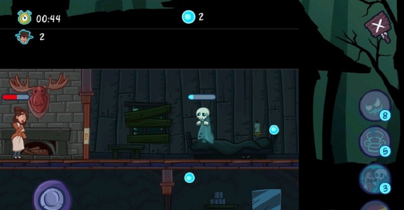 4.点击屏幕右下角的各种按钮可以让阿布使用能量来恐吓房间中的人类