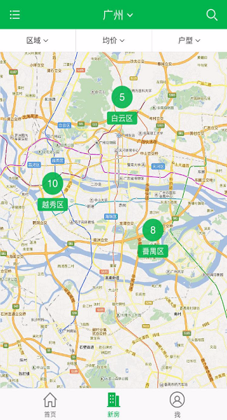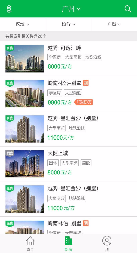 2.精准搜索:支持区域、价格、户型等多维度搜索和综合搜索