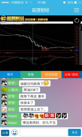 辰贤财经app是一款专门为用户打造的原油、有色金属投资产品行情分析和交流学习平台,为其提供在线视频直播学习、操作建议、投资战略等功能服务,让你时刻了解投资动向,欢迎下载!
