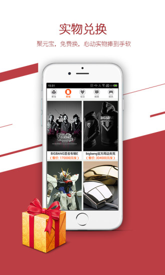 1.实物兑换:聚元宝,免费换,心动实物碰到手软。