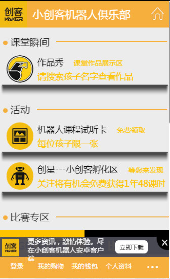 小创客机器人app是一款专门为孩子打造的一款通过机器人来培养孩子的创意方面的综合素养的一款手机应用,主要致力于通过课程的学习帮助孩子自身创意的培养和发挥,很不错的一款教育应用,欢迎需要的朋友来绿色资源网下载体验吧!