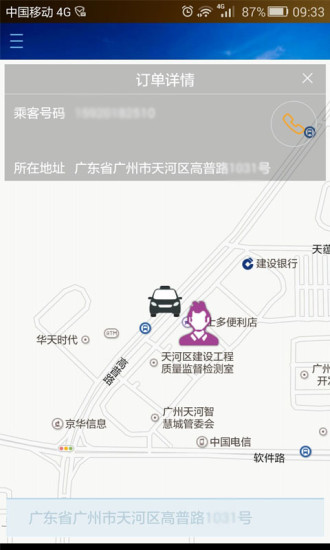只提供广州市花都区出租车司机使用,便于和乘客联系,明确知道乘客位置,方便乘客并且搭乘。只有在花都区出租车管理平台登记认证后的手机才可以登陆。