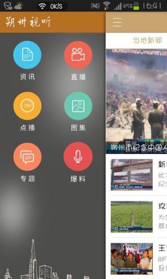 朔州视听网客户端分为六个板块,直播、点播、资讯、图集、爆料和专题。资讯中有当地的新闻视频,还有国内、国际的热点新闻。图集中包含了朔州广播电视台主持人的生活照和工作照,以及当地的美食照,让大家在了解朔州当地民俗文化的同时也感受当地的风土人情。还有爆料,注册一个账号后,可以爆料发生在自己身边的一些有趣的人和事。