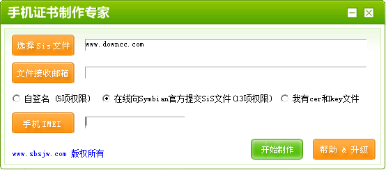 手机证书制作专家是一款适用于Symbian OS v9.x系列签名工具,可以为目前S60第三版以及S60第五版手机的安装程序进行数字签名。1.0版本提供了3种签名模式。