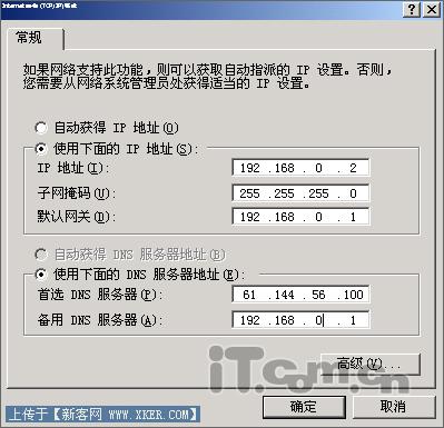 由于路由器的IP段是192.168.0.1,所以电脑的IP也要设置为相同的IP段,下面设置为192.168.0.2,子掩码一般都是255.255.255.0,而网关肯定是需要指向路由器的IP,因此设置为192.168.0.1。DNS中有所不同,按不同的宽带类型与运营商的DNS填写,因路由器中可设置DNS,这里不填或者直接填192.168.0.1路由器的IP也行。填完直接按确认,完成!