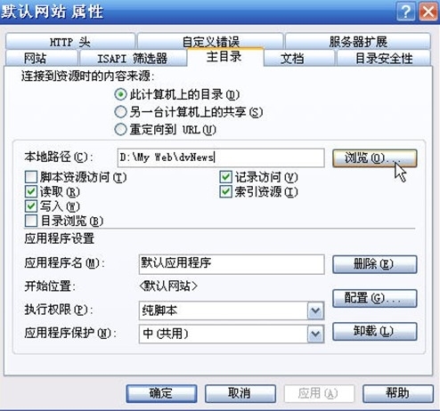 (单击“浏览”,检查是否能运行asp程序)