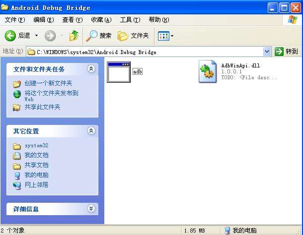 3. 下载ADB程序到电脑并解压,将解压得到的ADB文件夹复制到电脑的C:\windows\ system32 文件夹里。(我的电脑使用的是XP系统,如果使用windows7系统的请放在C:\windows\system文件夹里。
