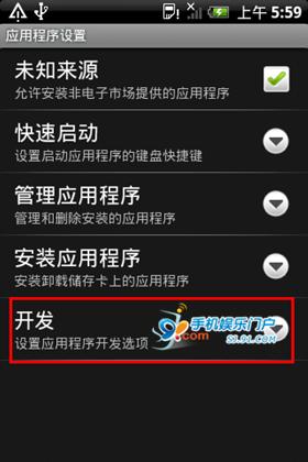 进入"设置"->"应用程序"->"开发"勾选"USB调试程序"。这样设备才可以通过USB连线时被PC识别到。