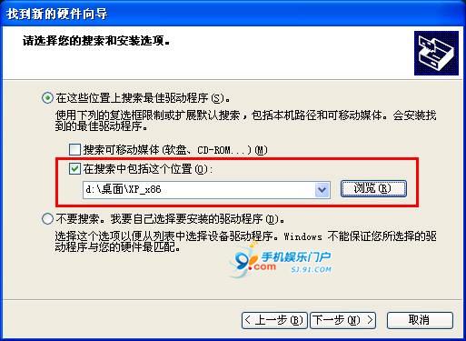 接着通过"浏览"找到下载好的驱动所在的文件夹(这里以Windows XP系统x86芯片为例)。