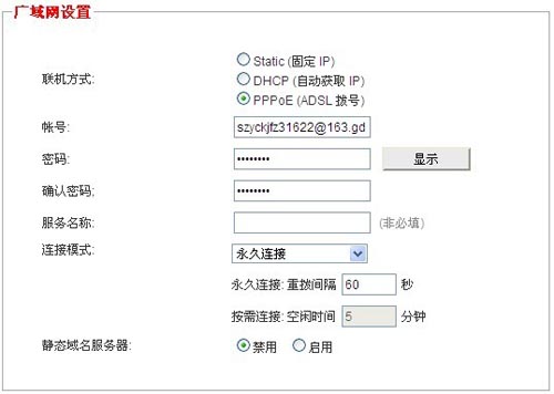 ①——如果是网吧或小区光纤接入用户,宽带服务提供商会向您提供 IP 地址,子网掩码,网关和域名服务器等详细信息,您只需要在直接在路由器上正确的设置这些参数就可以了。