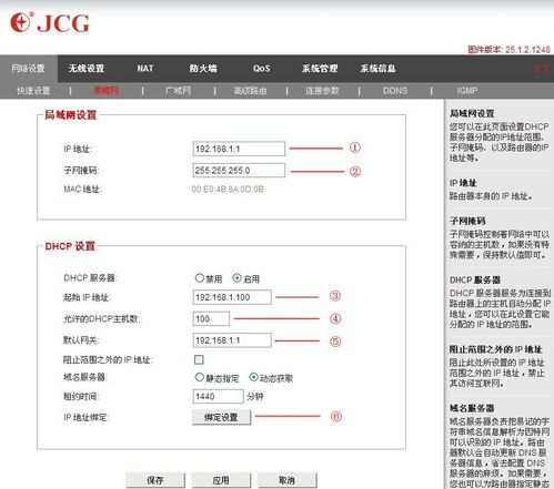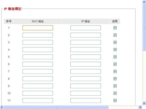 ⑥——绑定设置:您可以为指定的主机绑定一个 IP 地址,填入要绑定的主机的 MAC 地址和 IP 地址对即可。这是目前最有效的防止蹭网方法了,将信息填好后记得要保存修改哦。