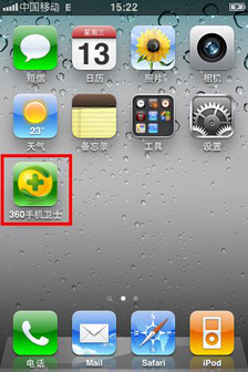 安装结束后请重启iPhone,桌面出现360手机卫士图标,点击"360手机卫士"图标。