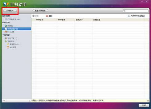 在程序管理界面选择 "安装软件",会弹出一个选择框,选择要安装的手机卫士deb安装包,进行安装即可。安装时会提示:"91手机卫士提示"该软件是Deb软件,安装具有一定风险,91无法保证其安全性,是否继续安装?",点击"是"即可。