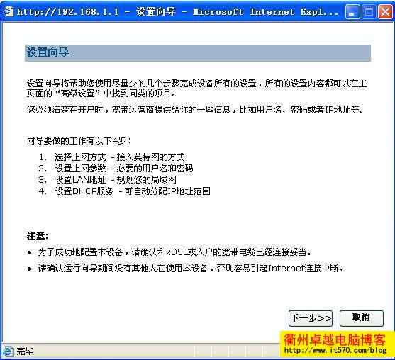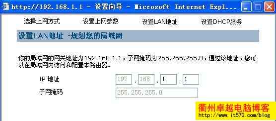 6、这里IP地址可以不动IP是指网关地址,也就是路由器的IP地址,如果自己需要的话可以改动,点击“下一步”: