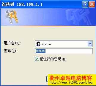 2、在IE栏中输入:192.168.1.1(金浪及TP等大多数品牌),(tengda的是192.168.0.1),敲回车后将会出现登录窗口,输入用户名密码(ID:admin PSSWORD:admin)
