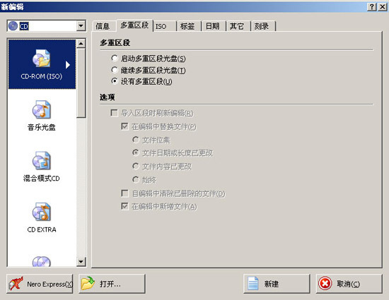 轨道音无间隔的意思就是你所刻录的音乐之间没有时间间隔,NERO默认的是有2秒的时间间隔的。点击“新建”按钮,弹出界面,如图