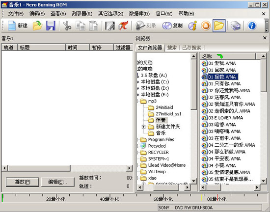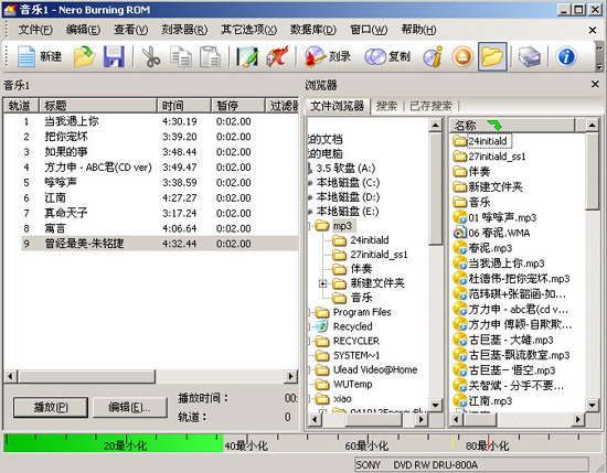 刚把自己要刻录的音乐一首一首拖到音乐区域后会自动排序,如图