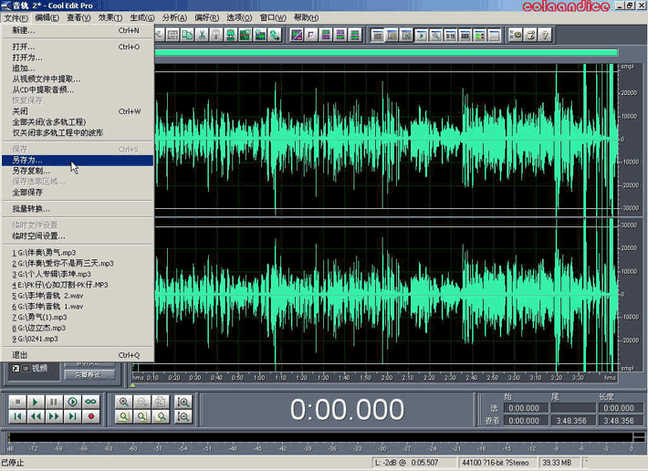 2.点"文件--另存为"将混缩合成后的文件存为mp3pro格式(图25)!!