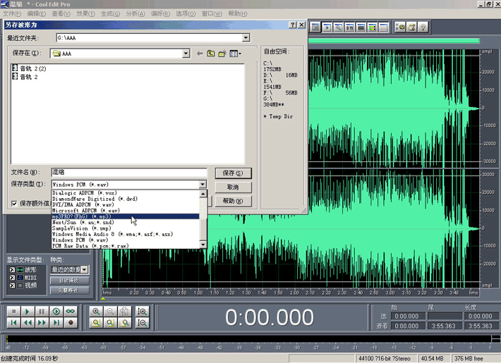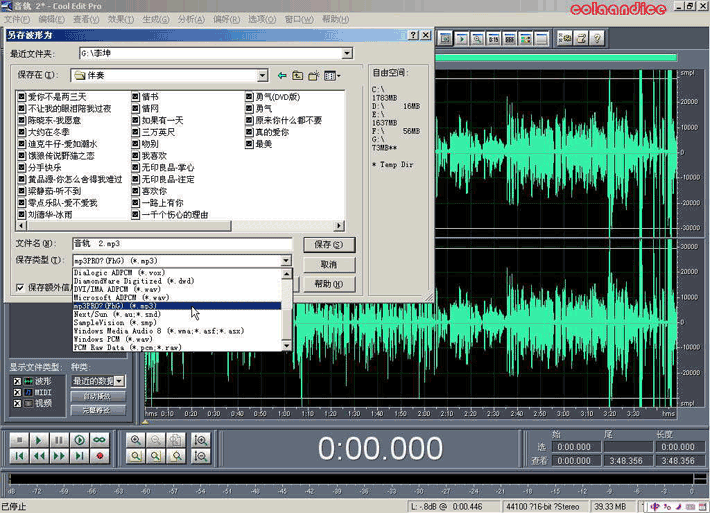 以前的介绍中是让大家存为wav格式,其实mp3也是绝对可以的,并且可以节省大量空间。